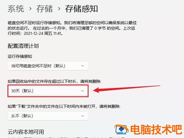 win10和win11用户还可以在系统设置-存储中打开存储感知,设置自动清空回收站,最短1天,最长60天。所以不要再用了shift del直接删除文件,这样删除的文件就不会进入回收站,误删文件就很尴尬了。