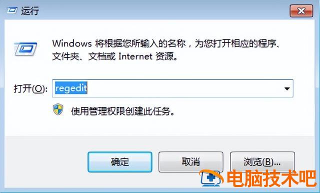 1.打开操作窗口(win r),输入regedit,按回车键进入,如图所示: