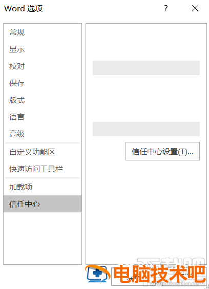 在“选项”中,左侧点选切换到“信任中心”,然后选择右侧的“信任中心设置”(本图为节省空间PS过,与实际略有出入)。