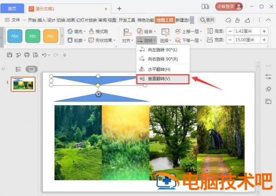 我们把等腰三角形复制一个出来,然后把它设置为【垂直翻转】,如图所示。