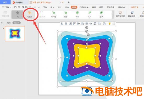然后ctrl+a全选所有多边形,设置陀螺旋动画。