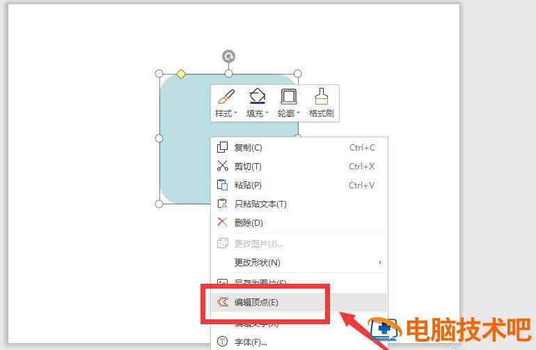 然后选中这个矩形,鼠标右键编辑顶点。将圆角矩形拉取成任意多边形。