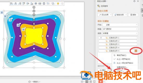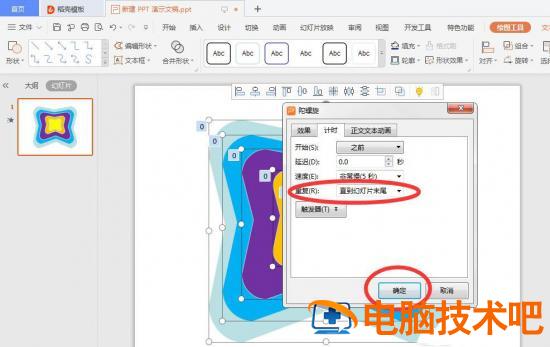 最后将动画效果调整为从上一项开始执行,并重复到幻灯片结束。