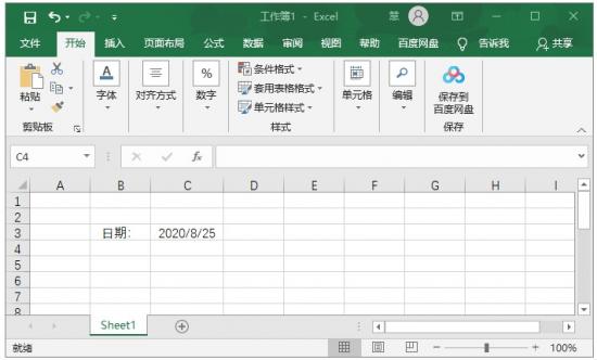 1. 新建一个 Excel 工作簿,点击选择目标单元格,用于录入日期,输入函数公式“=Today()”,函数中的括号可以在中英文状态下输入;