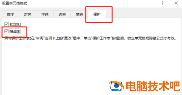 4、在【设置单元格格式】中的【保护】一项中,勾选【隐藏】,然后点击【确定】,如下图;