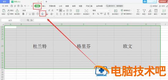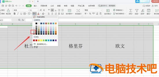 选中一大块区域,点击“开始”下面的颜色填充图标;