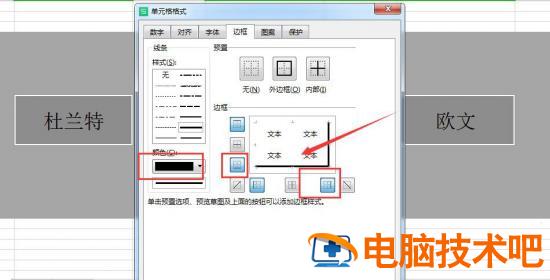 再将颜色设置为黑色,点击“下边框”和“右边框”;