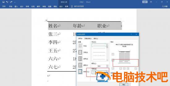 确认对话框后,选中第一行,点击菜单栏上的“设计-页面边框”,在边框界面,选择细线,添加到预览框下边。