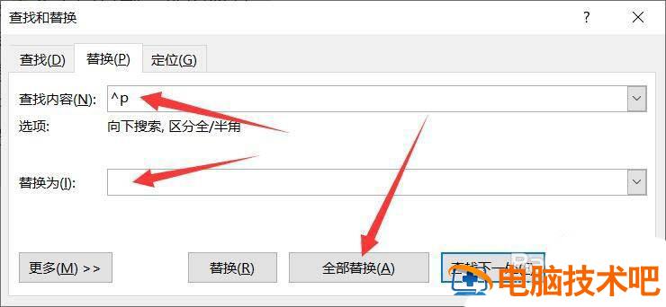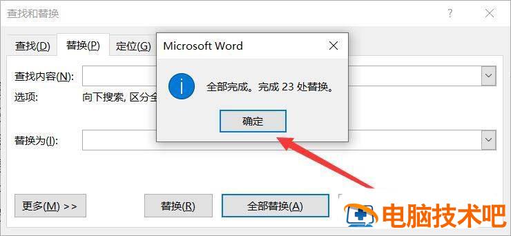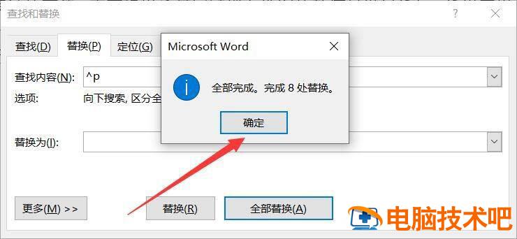 修改查找内容为^p,替换内容不变,点击【全部替换】-【确定】。