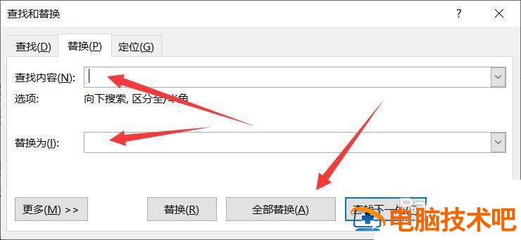 查找内容输入一个空格,替换内容不输入,点击【全部替换】-【确定】。