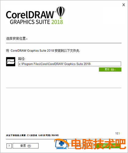 选择coreldraw2018软件的安装路径,那个磁盘空间大就选择那个,点击立即安装。