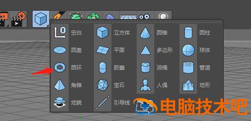 第二步,点击上面一栏中的正方体,按住它不松手。