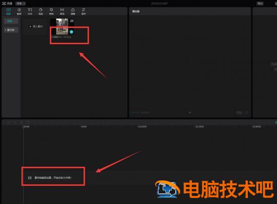 然后视频素材拖拽到视频轨道上。