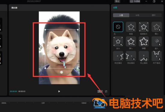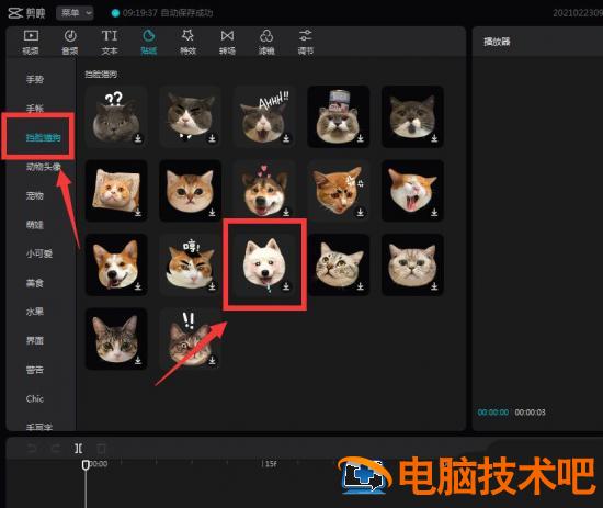 然后选择挡脸的贴纸,这里选择挡脸猫狗,点击+号填入素材。