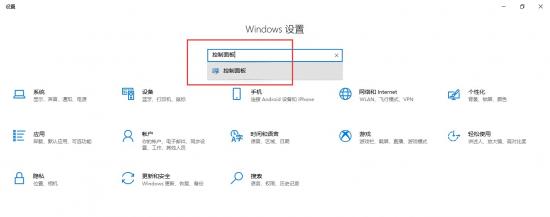 2、进入“Windows设置”搜索“控制面板”并打开。
