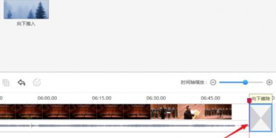 4、如下图所示,我们拖动时间线下方的滚动条,将视频拖拉到视频最后的位置。