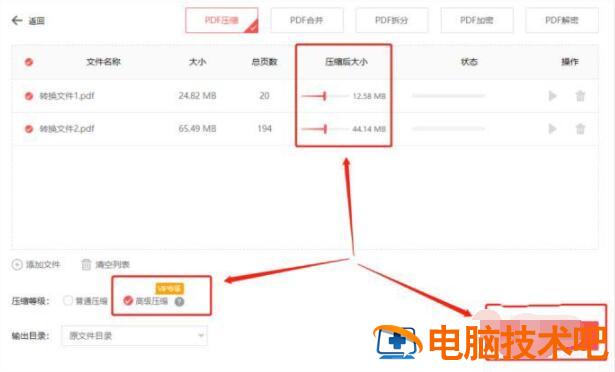 将PDF文件添加好后,我们可以开始设置下方文件的压缩等级。压缩等级分为普通压缩和高级压缩。普通压缩的效果是有限的,如果你需要将PDF文件压缩到某一个大小或者范围内,选择“高级压缩”自己设置就可以。最后点击一下“开始压缩”就可以啦!