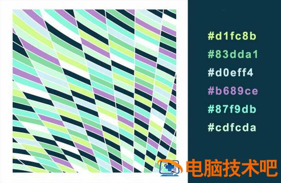 将上一步做好的图形旋转90度,随机挑选几个色块填上白色。这是我的第一个配色。因为后面的填色步骤就是这样随机的安排色彩的过程。选择你要填的色块,然后运用填色工具,按住ALT键,点击其他将要填色的色块就可以轻松快捷的完成填色。