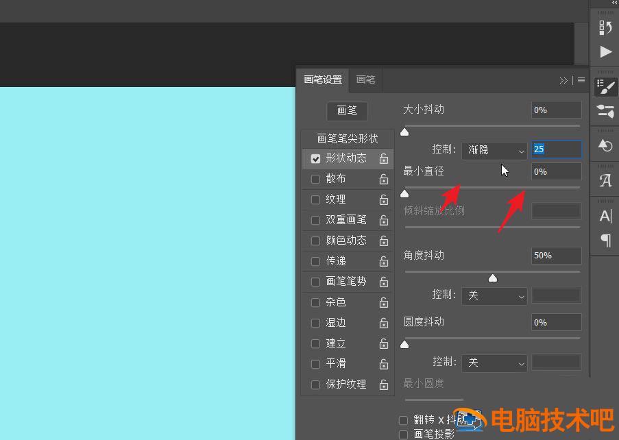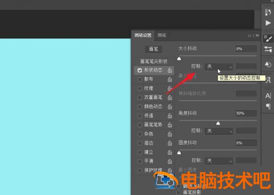 选择形状动态,找到设置大小的动态控制按钮。