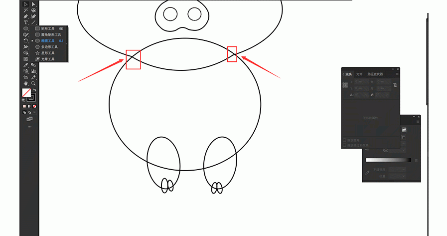 八、然后再用椭圆工具画出猪仔的身体,大腿和脚,调整好位置