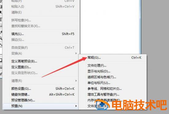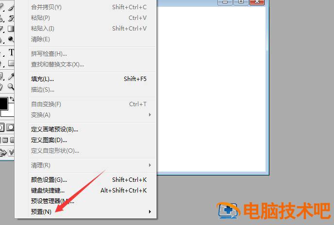点击了 编辑 菜单之后,弹出了下拉菜单选中为 预置 选项