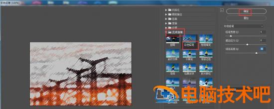 在艺术效果文件夹中点击彩色铅笔,设置好参数,按确定;