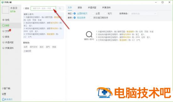 4、点击搜索,可搜索文件、报告、术语,还可查看搜索小技巧