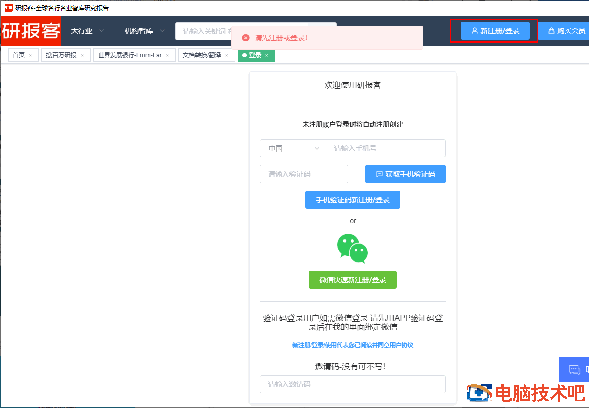 10、然后注册账号并登录,登录之后即可下载研报,不过对非会员用户会有一定的限制。