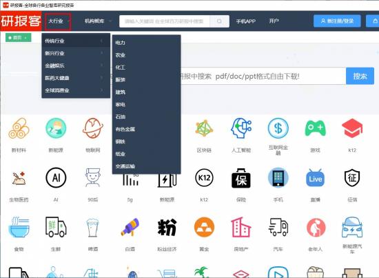 5、请输入要搜索的关键词在全球百万研报中搜索,pdf/doc/ppt格式自由下载。