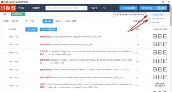 9、在下载研报之前,您可以在右上角的设置菜单中选择“下载路径设置”,设置研报的下载保存位置。
