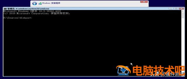 输入 diskpart 后,然后按回车键(如下图所示)