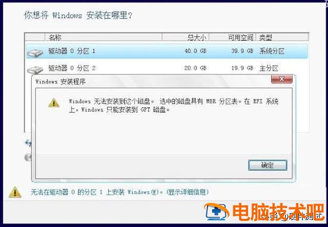 大功告成WIndows该磁盘无法安装。