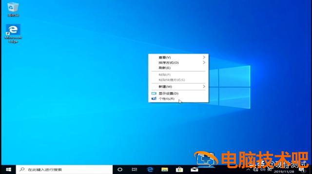 点击桌面上的鼠标右键,选择个性化。(如下图)