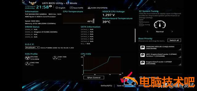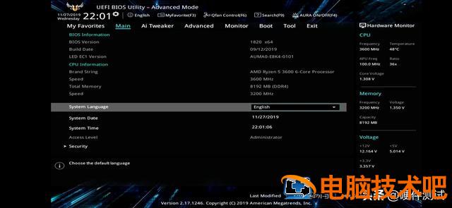 这个界面是华硕BIOS高级模式界面。如下图所示。然后找到“Boot点击进入Boot界面。