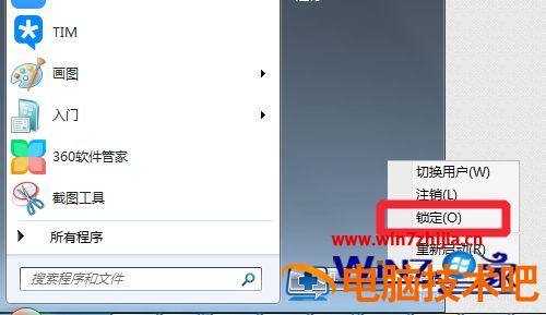 2、如果这个不会没关系,教你个简单的,点击开始菜单,打开关机按钮的下拉框,点击锁定,便能锁定电脑。