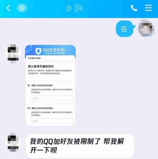 假装你的QQ朋友,给你发消息说你的Q号限制登录,现在需要收集「好友的」QQ号码和密码。