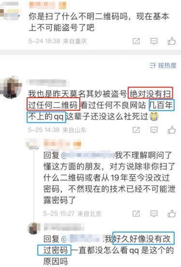 一些被盗的网民声称,他们没有扫描未知的二维码或登录奇怪的网站,但Q号也被盗。