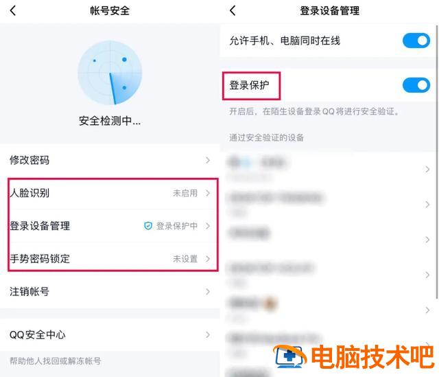 如安全中心、登录设备验证、密码/人脸/短信验证等...
