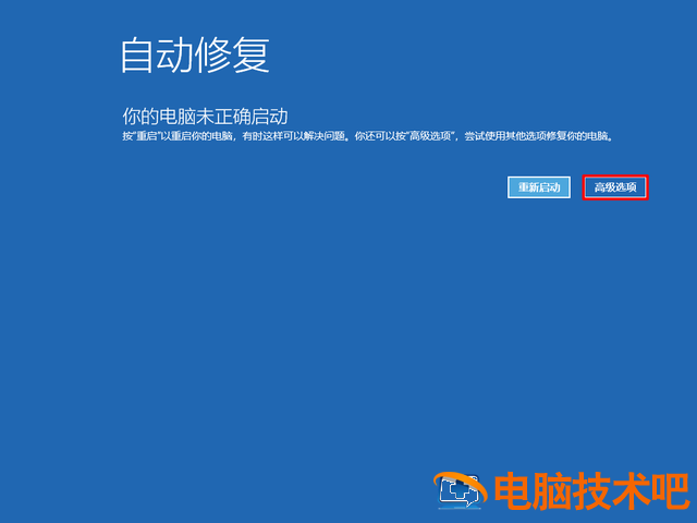 2、进入Windows高级修复模式(方法之一是启动显示Windows快速切断图标时的电源,修复模式将连续三次进入)