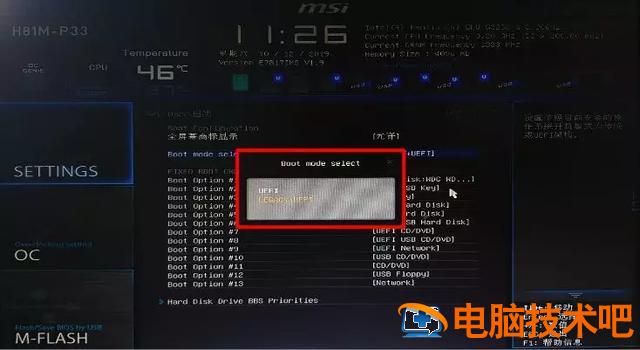 检查启动模式是否对应于安装系统时的模式UEFI或Legacy。