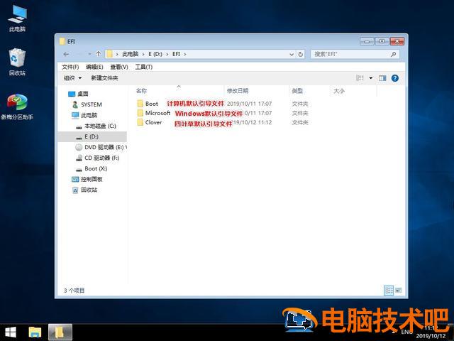 EFI系统分区是各操作系统共享的系统分区,各操作系统在EFI在系统分区中建立自己的指导文件夹.