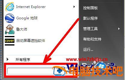 1、搜索方式。这种方法是比较简单的。首先打开开始菜单,在开始菜单的最下文有一个小的搜索框。你点击一下这个搜索框,使其处于输入状态。