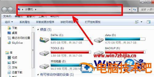 2、在资源管理器中,你用鼠标左键点击一下资源管理器的地址栏,使其处于可输入状态。