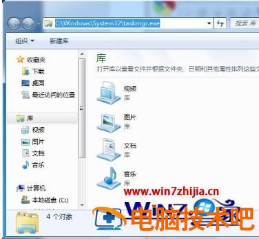首先打开计算机资源管理器,在资源管理器的地址栏点击一下,此时其处于可输入状态,输入 C:WindowsSystem32 askmgr.exe,按回车键即可打开win7资源管理器