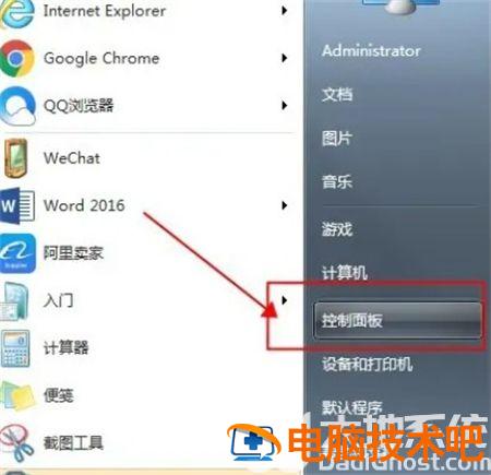 第一步:打开win7开始菜单,选择“控制面板”,点击进入,如图所示.