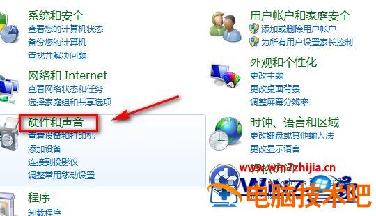 二、在控制面板中点击选择【硬件和声音】,进入【硬件和声音】的设置界面。