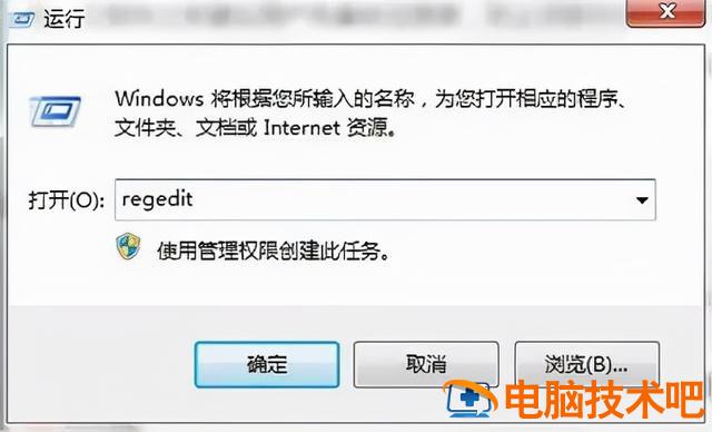 1、同时按win r打开操作窗口,输入regedit点击确定,如图所示: