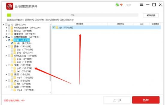 第三步,此时,软件将全面扫描U盘。如果在扫描过程中找到需要恢复的文件,请直接检查并单击恢复。扫描结束到扫描结束。扫描结束到扫描结束。