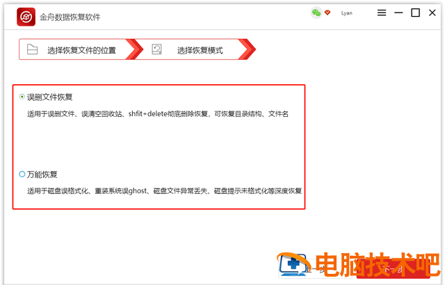 第二步,然后,选择恢复模式,以下两种模式都有相应的说明,选择适合自己的,然后点击下一步;