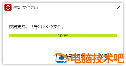第五步,恢复后会得到以下提示,点击导出目录查看文件;